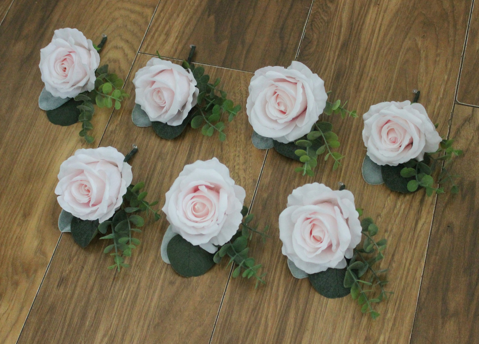 A Magnificent handmade bridal buttonhole or corsage created using a silk rose, lambs ear and eucalyptus.