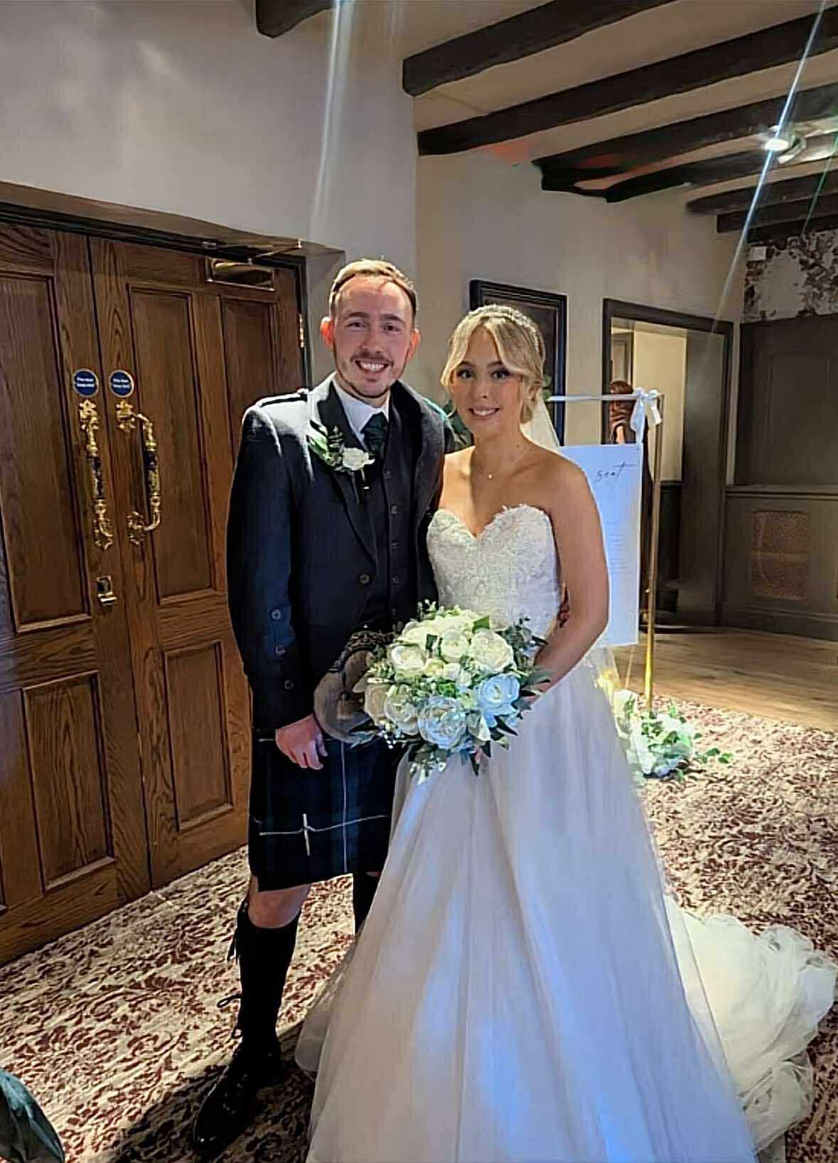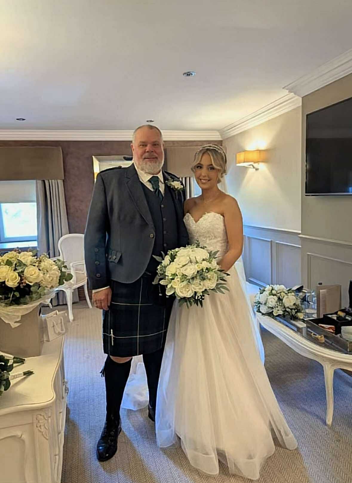 Bridesmaid bouquets pictured are adult bridesmaid size.