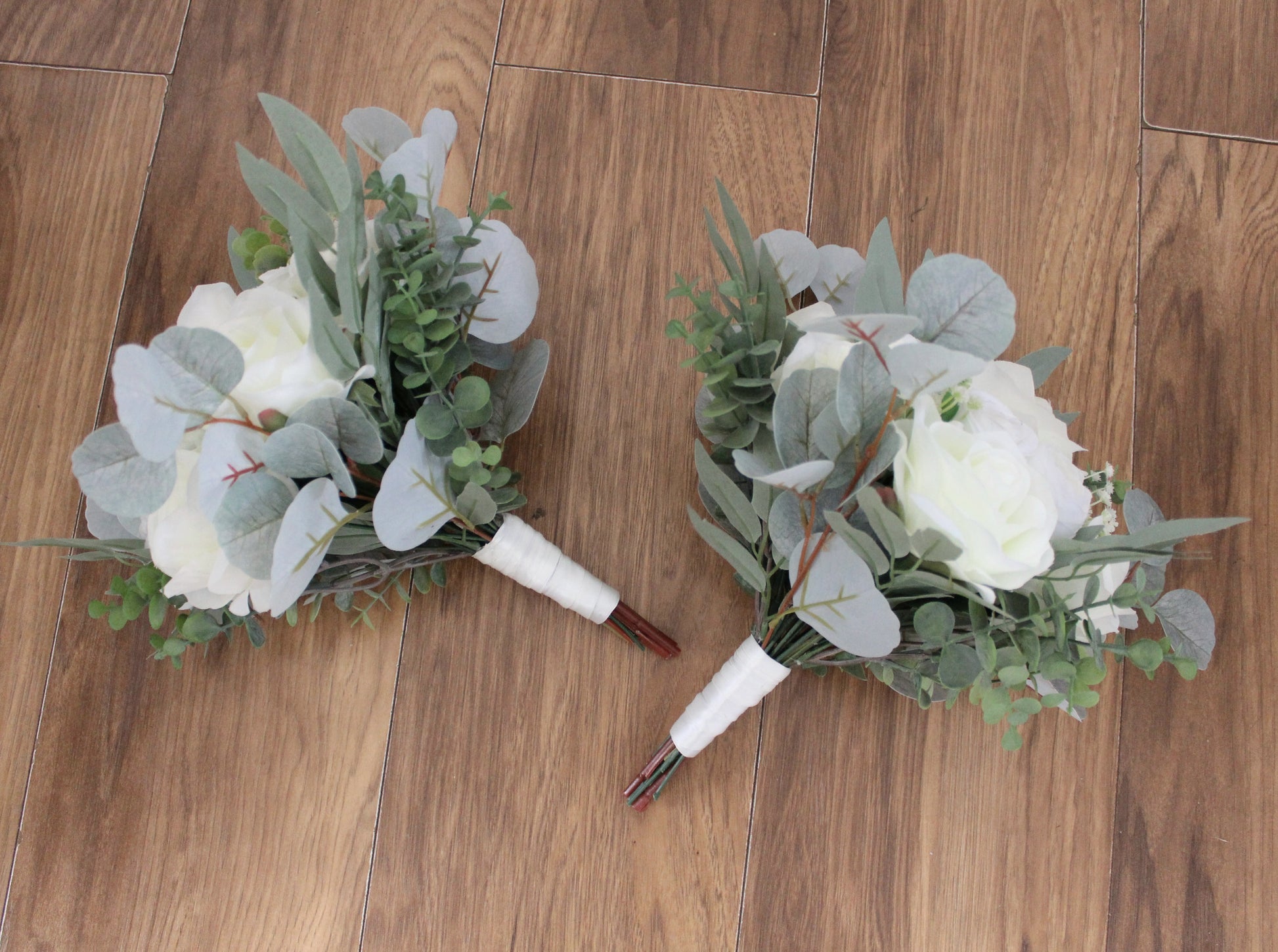 Two bridesmaid bouquets pictured together are junior bridesmaid size