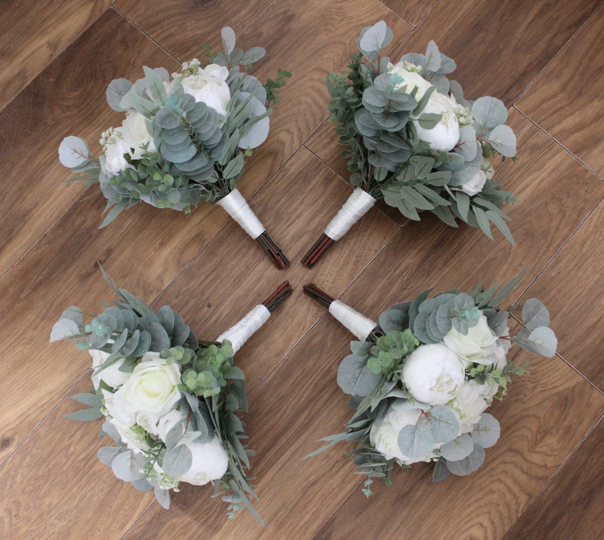 Four bridesmaid bouquets pictured together are adult bridesmaid size