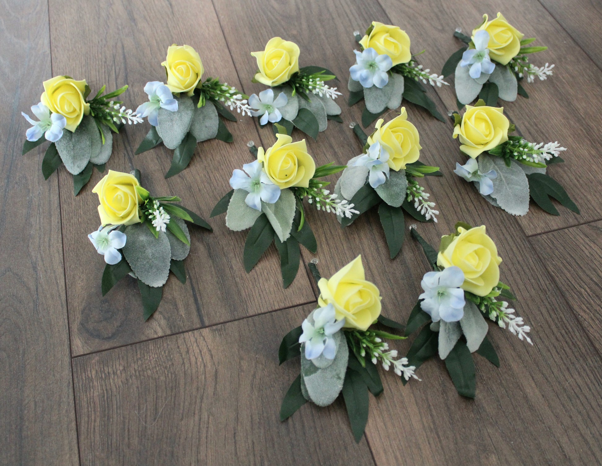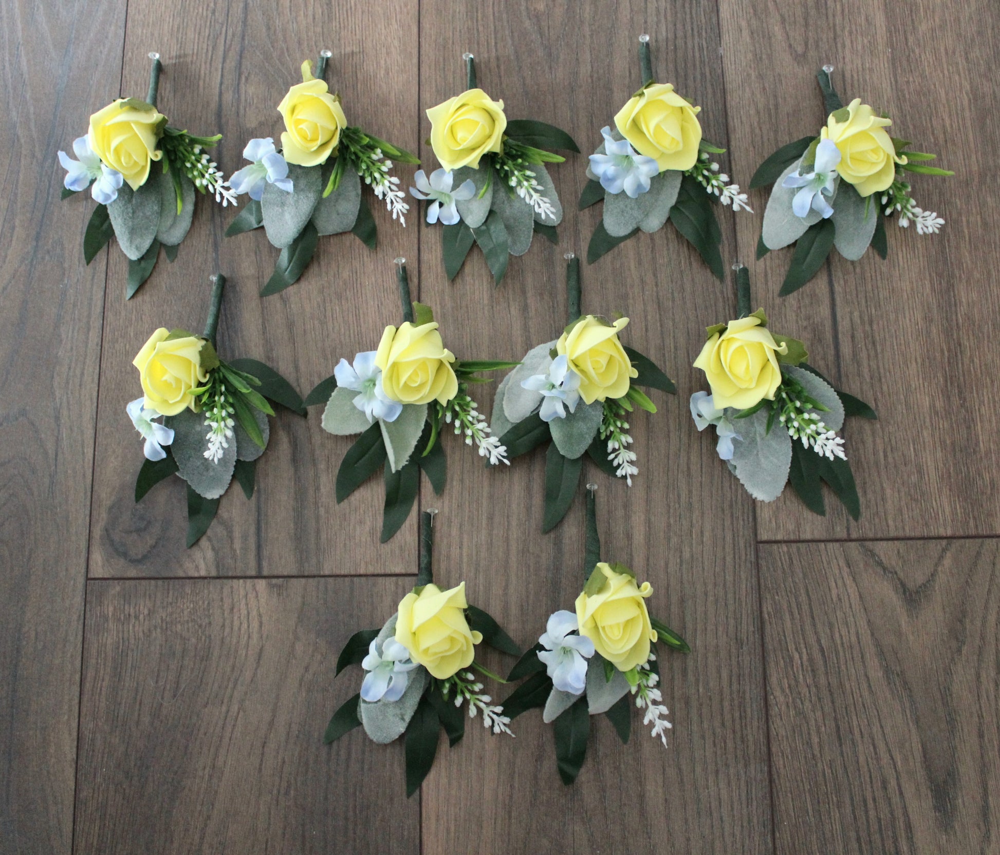 Child buttonhole will be smaller and will include a safety pin attached. Buttonholes will include a pin