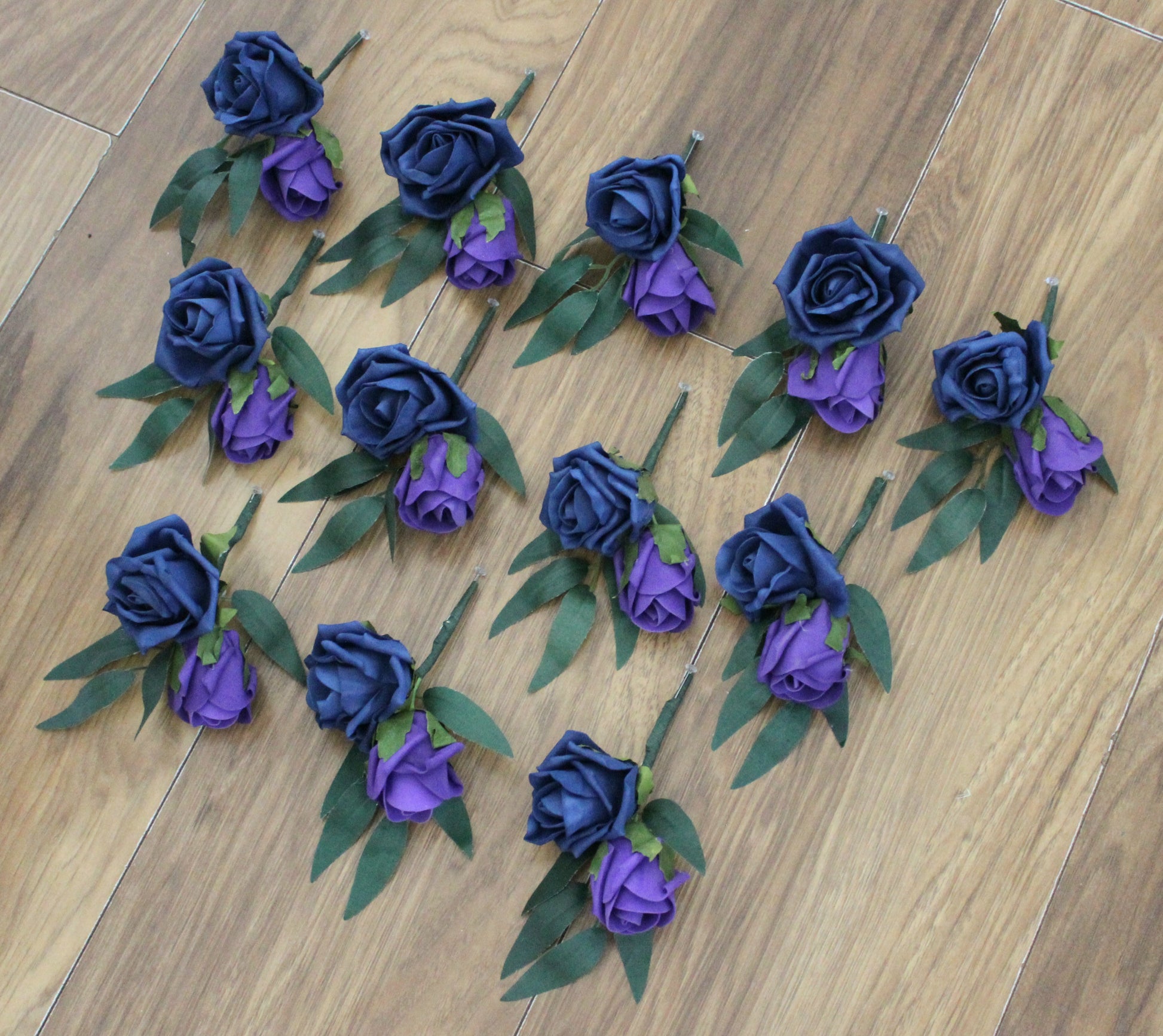 Child buttonhole will be smaller containing one rose and will include a safety pin attached.