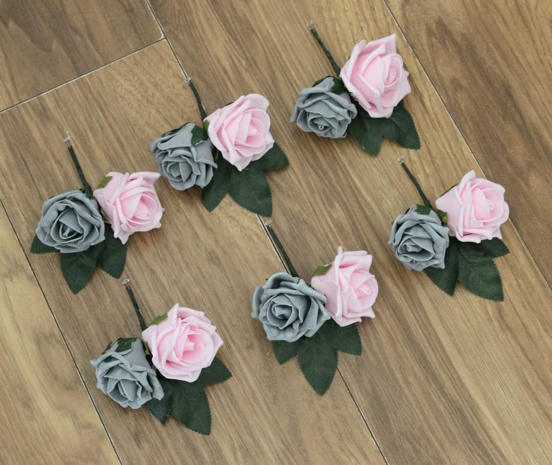 A perfect handmade buttonhole or corsage created using colourfast foam roses and rose leaves