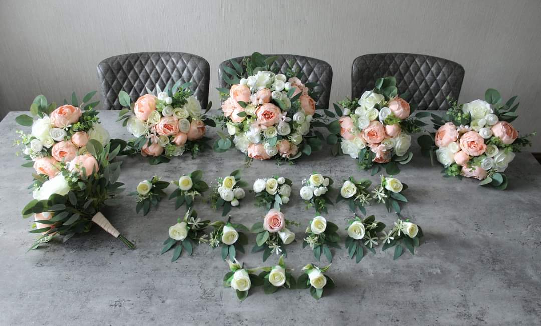 These gorgeous buttonholes contain very high grade single stem silk roses, willow leaves and mixed foliage
