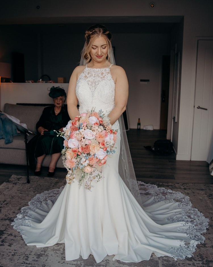 Bridal bouquet options and bridesmaid bouquet options will all be in a posy/round shape